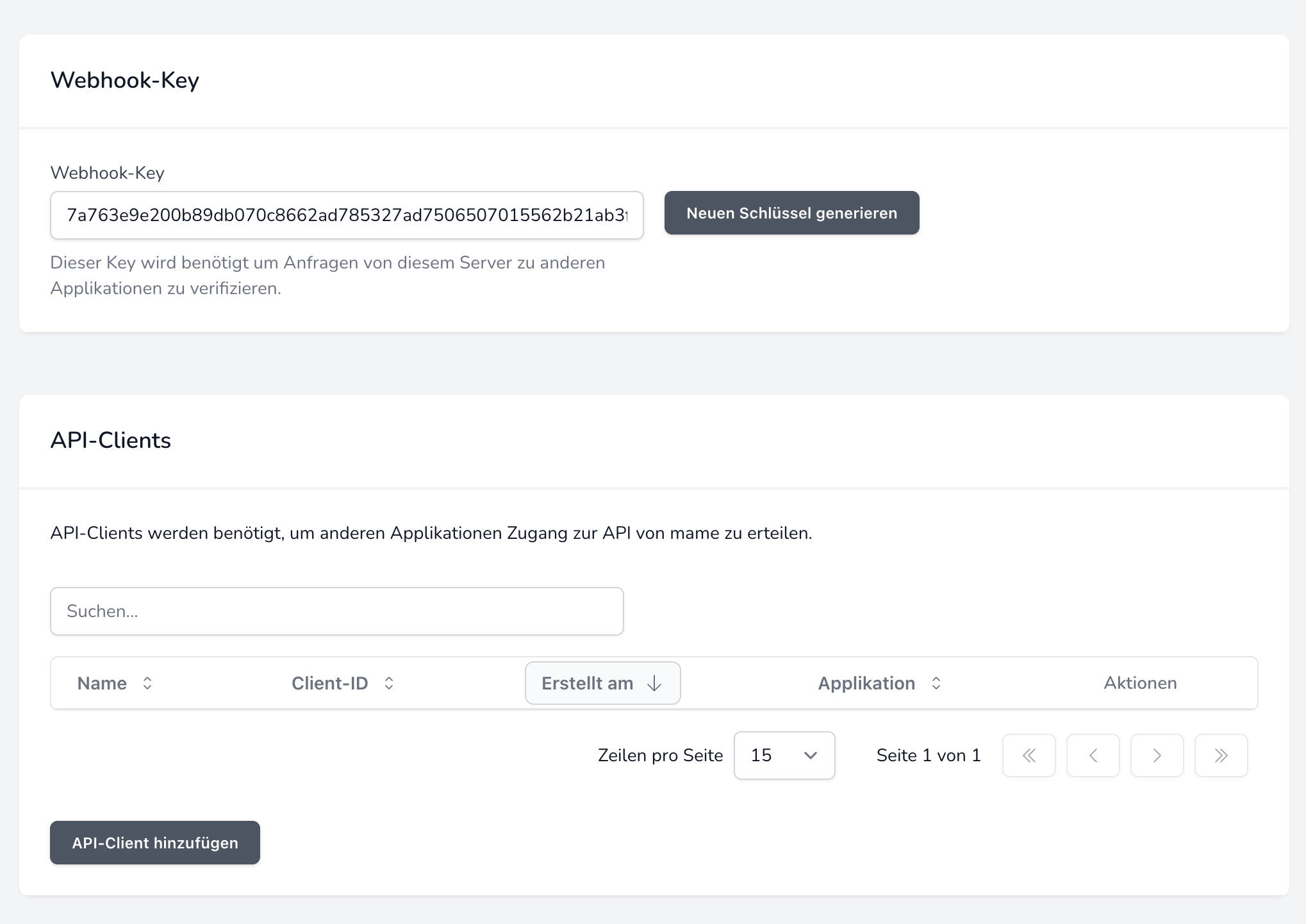 Hinweis: Es wird ein API-Client benötigt, kein API-Token.