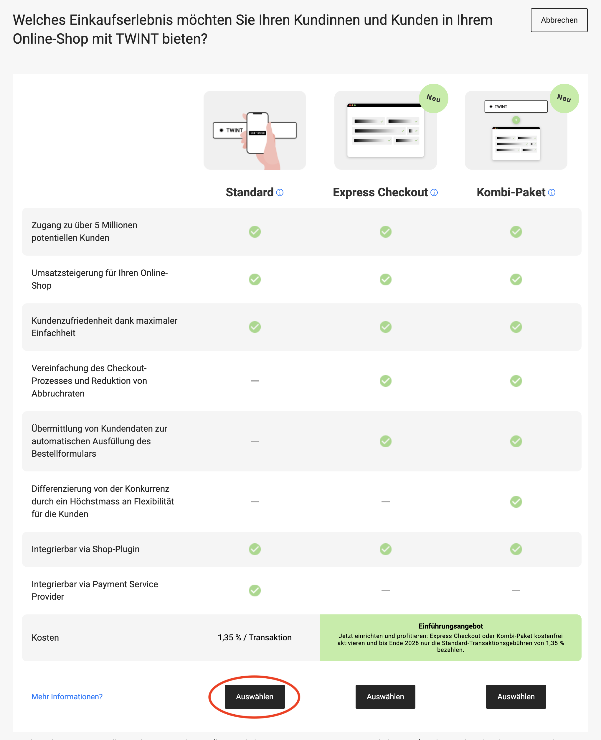 Im TWINT-Portal: